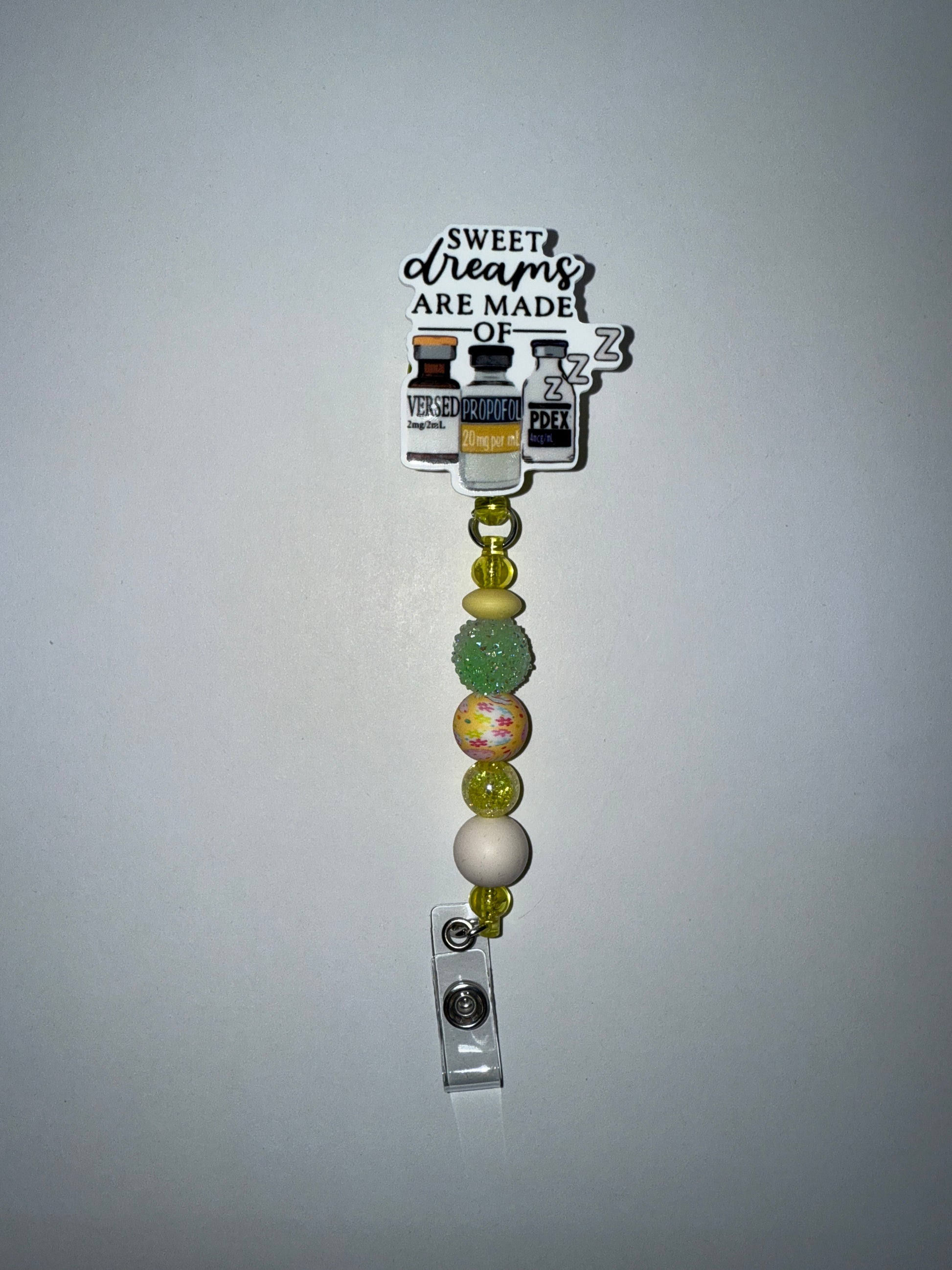 "Keep your ID and keys close at hand with the Bade Reel. Featuring a playful quote ("Sweet dreams are made of..."), this badge reel adds a touch of humor to your daily routine. Say goodbye to boring lanyards and hello to a quirky and fun way to carry your essentials!"